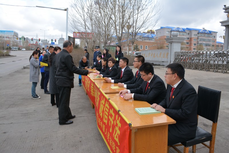 4月26日上午,双鸭山中院设立“法律咨询台”,通过发放法律宣传单、悬挂宣传条幅、现场讲解等方式向群众进行知识产权法律宣传。