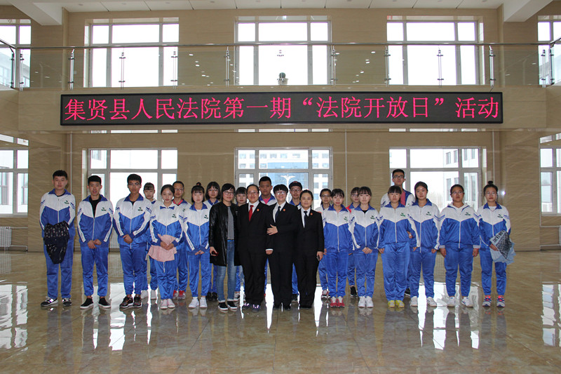 为推进阳光司法,消除法院神秘感,使民众走进法院、了解法院,2017年4月26日上午,集贤县人民法院党总支举办了第一期“法院开放日”活动。此次活动邀请了集贤县第四中学的20余名师生,对学生们进行了全方位的法制教育。在此次活动中,四中的师生参观了法院的导诉台及便捷电子查询系统、立案庭、监控室、审判法庭、刑事被告人羁押室、干警训练馆等处。学生们热情高涨,不断的提出各种法律问题,我院干警都耐心的一一做了解答。