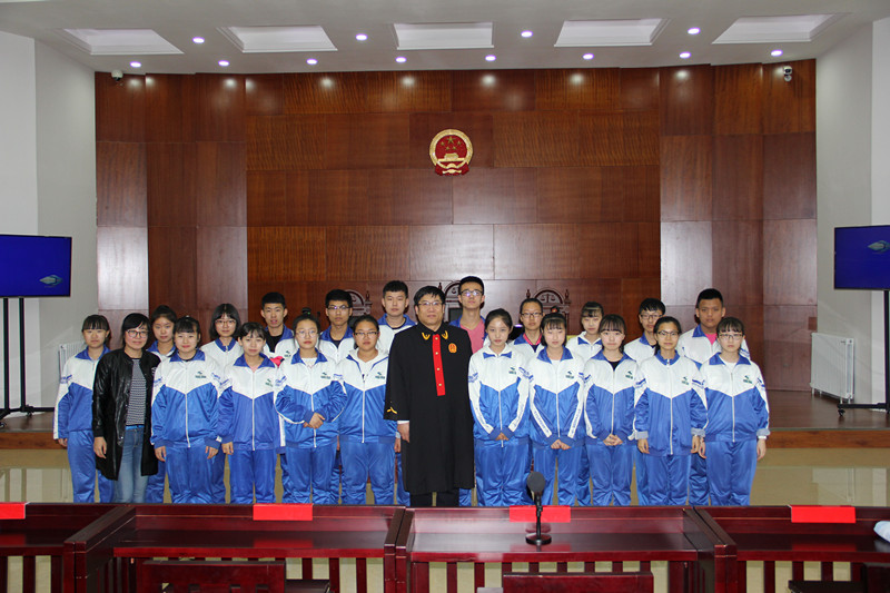 在与同学们交谈的过程中,我院党总支书记陈晓冬了解到,各位师生对庭审十分感兴趣,便安排师生们观摩了升昌法庭庭长高峰同志的庭审。这是一个关于健康权纠纷的案件,证据形式多样,高庭长有效的掌握了庭审节奏,四中的师生们都听的非常认真,庭后还纷纷要求与高庭长合影留念。