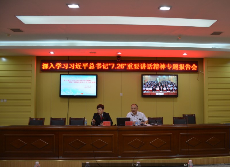 9月15日下午,双鸭山中院召开深入学习习近平总书记“7.26”重要讲话精神专题报告会,邀请市委讲师团团长刘万东做题为“学习领会习近平总书记讲话精神,夺取中国特色社会主义伟大胜利”的专题辅导。党组书记、院长田守明及党员干部、干警90余人参加学习。