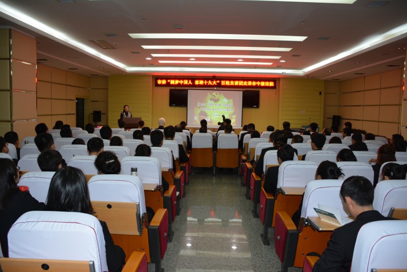 9月29日下午,双鸭山市“中国梦 身边事”百姓宣讲团“圆梦中国人 喜迎十九大”主题巡讲在市中级法院二楼会议室举行。中院全体干警聆听了宣讲。