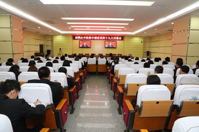 10月18日9时,双鸭山市中级人民法院组织全体干警集中收看党的十九大开幕会盛况,聆听习近平总书记代表党的十八届中央委员会向大会所作的报告。中院党组书记、院长田守明参加市委统一组织收看,其他在双党组成员与全体干警在中院视频会议室收听收看。