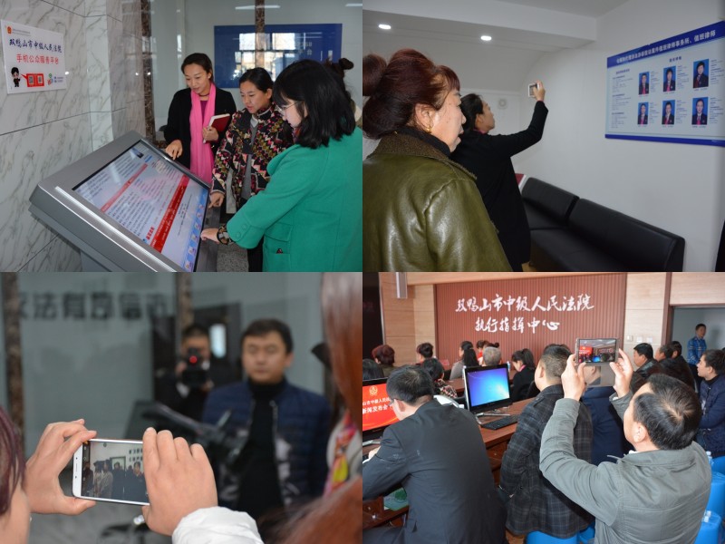 代表委员们和媒体工作者参观了诉讼服务中心、科技法庭和执行指挥中心,并参加“公众开放日”和“司法宣传”新闻发布会。参观过程中,工作人员对法院的立案、信访流程和各项基础设施建设进行详细介绍,代表委员们扫码关注了省法院和中院的官方微信和官方微博,并对通过中院官方网站了解的2017年以来全市法院审判执行、队伍建设、廉政建设、文化建设等方面取得的成绩给予高度评价。