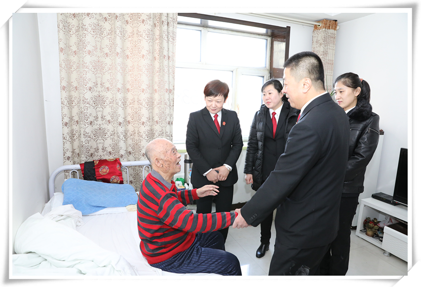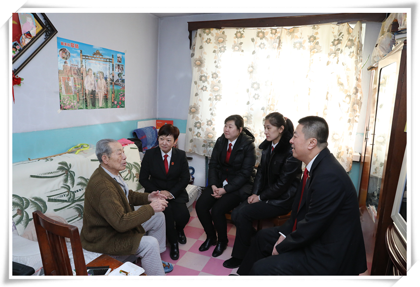 小年当日,双鸭山中院党组成员、政治部主任王郑燕一行五人走访慰问离休老干部,代表中院党组向他们致以节日的问候,送去了法院的关爱、温暖以及新春美好祝福。