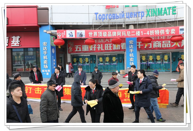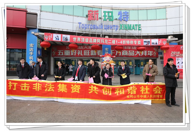 为巩固和打击非法集资宣传教育工作成果,进一步营造良好舆论氛围,从源头上遏制非法集资高发势头,2018年2月9日,双鸭山市中级人民法院刑事审判二庭全体干警在双鸭山市新玛特商场门口开展宣传活动。