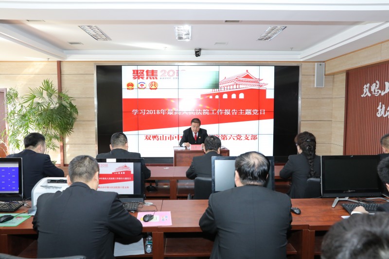3月28日下午,双鸭山中院第六党支部开展学习2018年最高人民法院工作报告主题党日活动,支部全体党员及积极分子参加。