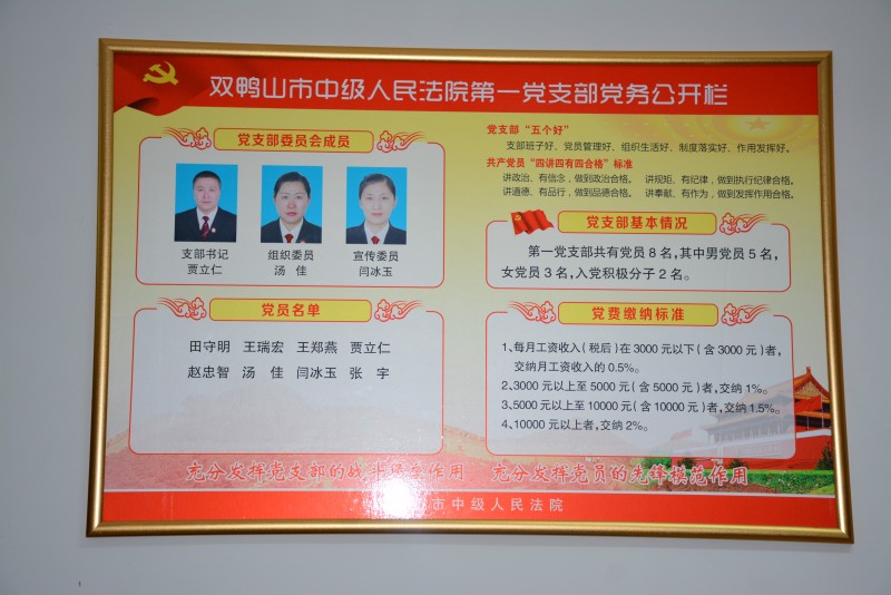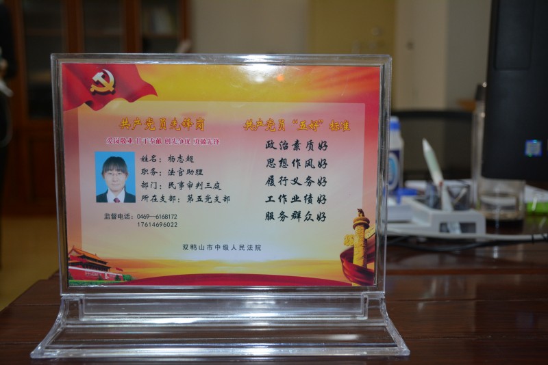 为贯彻落实省、市委关于深化机关作风整顿、优化营商环境有关要求,充分发挥党员先锋模范和党支部的战斗堡垒作用,4月2日,双鸭山市中级人民法院对员额法官和窗口单位工作人员实行党员挂牌上岗、亮明身份服务制度,设立10个共产党员先锋岗,悬挂各支部党务公开栏,并公布监督电话。通过挂牌上岗,增强党员自我约束意识,使党员的一举一动展现在广大人民群众的面前,让人民群众更好地监督党员。