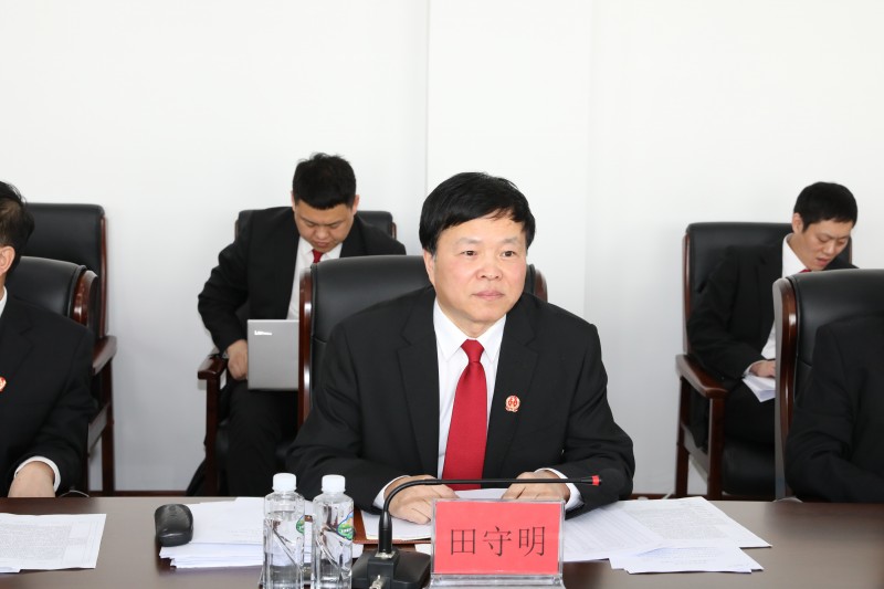 市中院党组书记、院长田守明结合尖山区法院工作实际就贯彻落实好中央、省市委和上级法院工作安排部署,坚持问题导向,从严从实推进落实工作任务,提升整体工作水平提出要求:一要以习近平新时代中国特色社会主义思想为指导,深入学习贯彻党的十九大精神,牢固树立“四个意识”,旗帜鲜明讲政治,提升服务保障大局能力,牢牢把握司法为民、公正司法工作主线,依法履职,提升各项审判质效指标,做好审判执行工作质量效率、均衡结案、案件评查、管理监督一体推进;二要全力推进执行工作,坚决如期打赢“基本解决执行难”这场硬仗;三要加强队伍建设,注重学习培训和提高,加强典型选树的培养;四要抓实作风整顿和服务保障,优化营商环境,将此项工作同省法院“四个专项活动”有机结合;五要按照中央“八项规定”及实施细则、省委“九项规定”和市委“三个带头”“八项注意”,加强党风廉政建设,扎实做好作风整顿和正风肃纪工作,认真落实“一岗双责”;以常态化、日常化、制度化加强法院各项管理,真抓实干,全力做好工作,推进尖山区法院整体工作上水平。