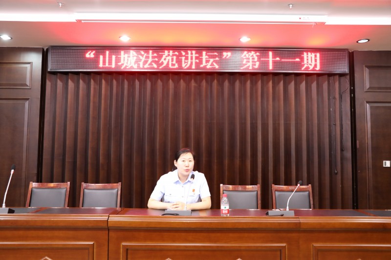 5月25日,参加全省法院政工科长“政治大轮训”学习归来的干部科负责人汤佳走上“山城法苑讲坛”,就如何做好司法体制改革中的思想政治工作与干警进行交流。