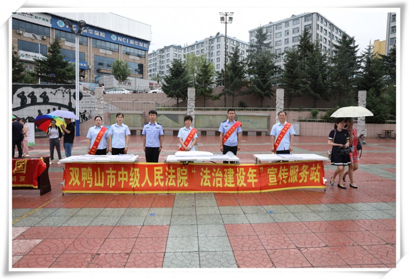 7月12日上午,为推进“法治建设年”活动扎实有序开展,落实“谁执法谁普法”责任制,推进“法律七进”活动开展,增强广大人民群众尊法学法守法用法意识,双鸭山市中级人民法院开展“法治建设年”法治宣传教育活动。